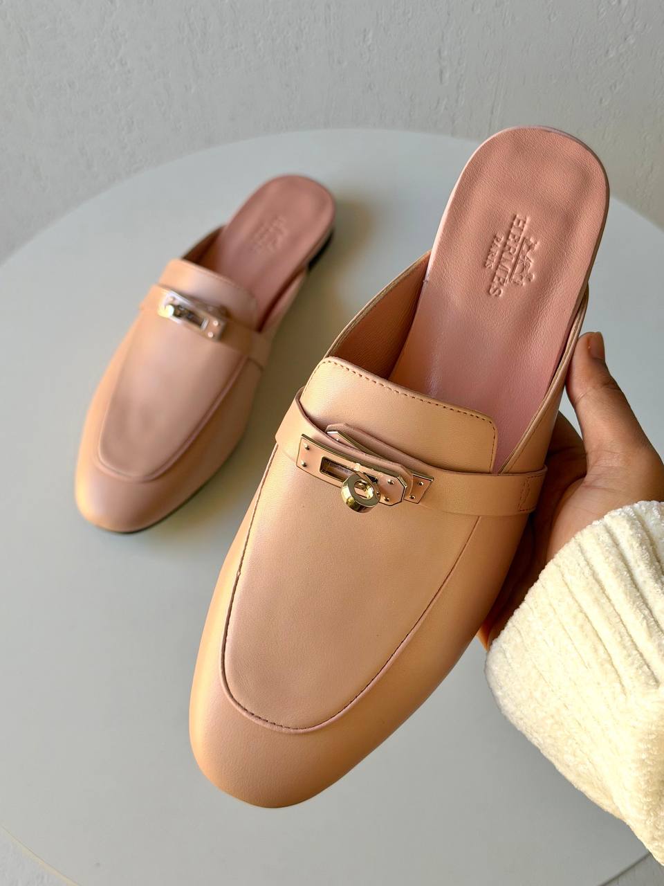 هذه نعال هيرميس أوز (Hermès Oz mules). وهي حذاء مفتوح من الخلف مصنوع من جلد العجل (أو الماعز في بعض الموديلات) ويتميز بإبزيم كيلي (Kelly buckle) المعدني الأيقوني المطلي بالبلاديوم.