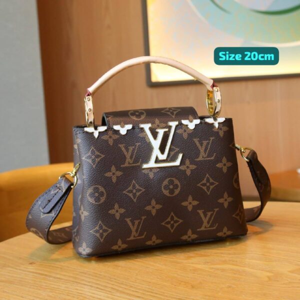 - المواد: مصنوعة من قماش مونوجرام المطلي المميز للعلامة التجارية مع حواف من جلد البقر الطبيعي وبطانة من الألياف الدقيقة.